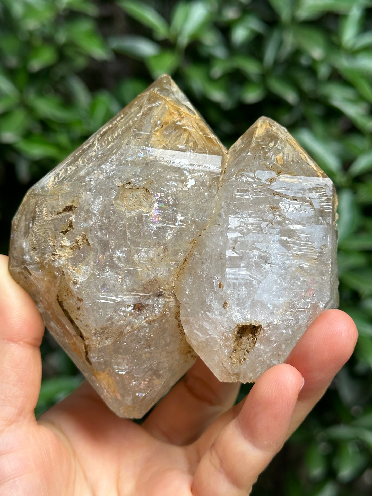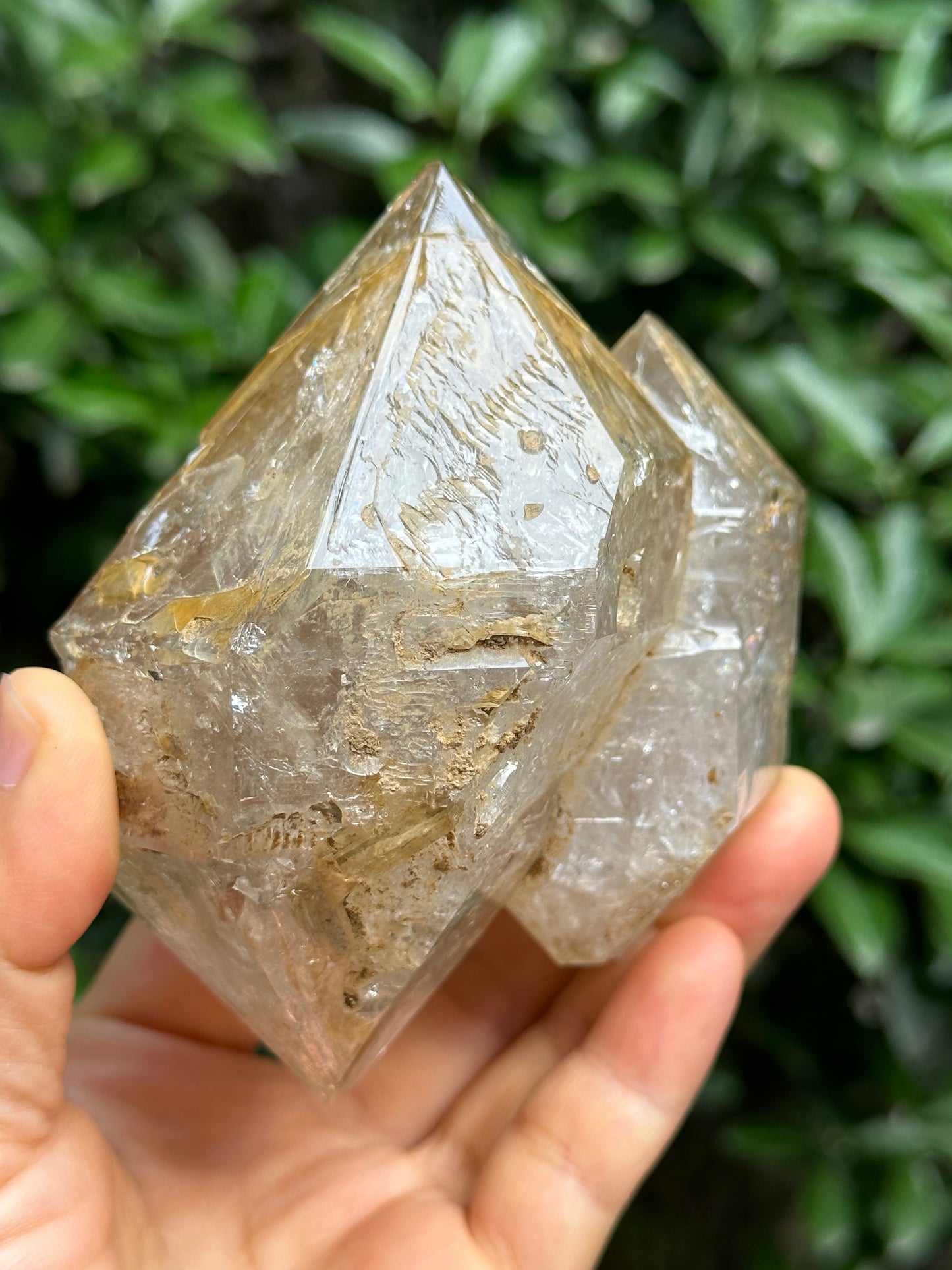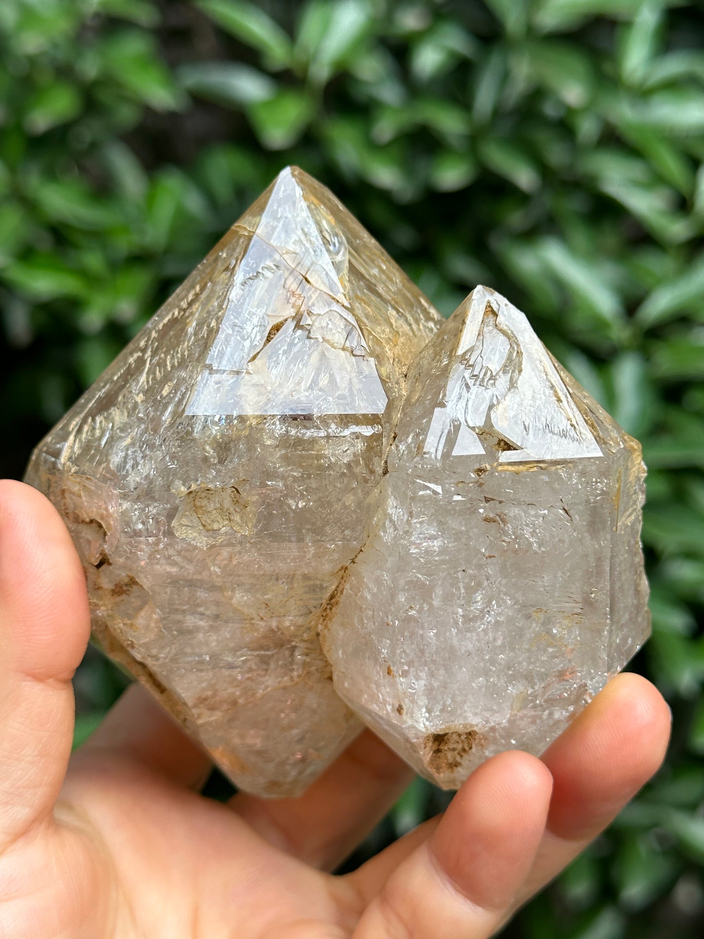 Rare Tantric Twins Double Terminated Fenster Skeletal Quartz Large Herkimer Diamond Crystal/Himalayan Energy Quartz Crystal-99*88*64 mm 490g
